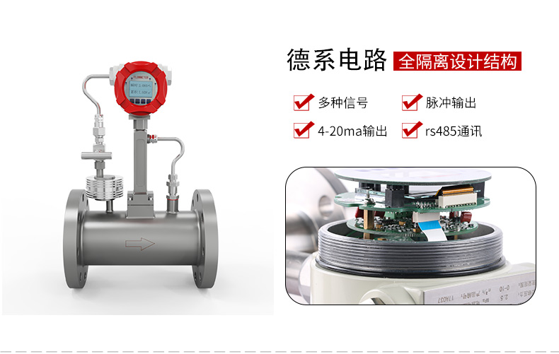 涡街流量计是一种应用卡门涡街原理的流量计,用于测量液体、气体和蒸汽的流量,也可测量含有微小颗粒、杂质的浑浊液体,广泛应用于石油、化工、制药、造纸、冶金、电力、环保、食品等行业。