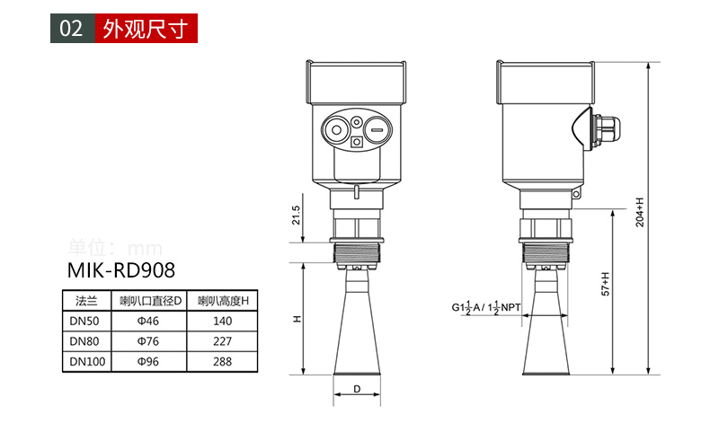 MIK-RD902/902T雷达液位计天线发射极窄的微波脉冲